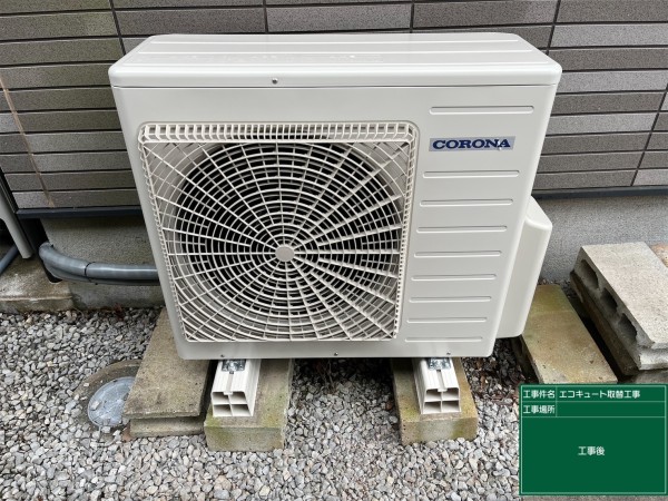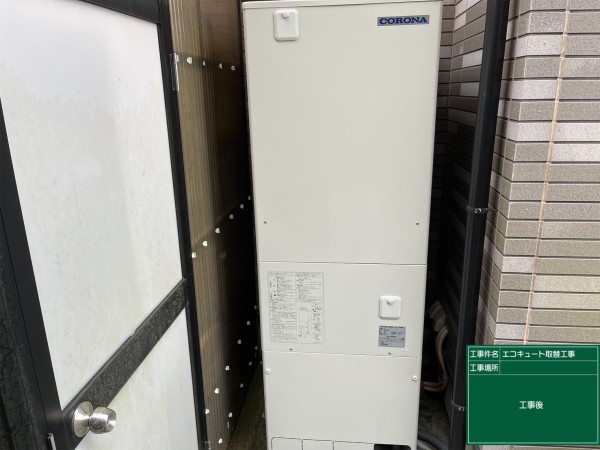 スイッチがはいらなくなったとのご相談。エコキュートからエコキュートへ交換させて頂きました。コロナ製CHP-37AZ1(370L)製品工事費消費税込み¥426,000
